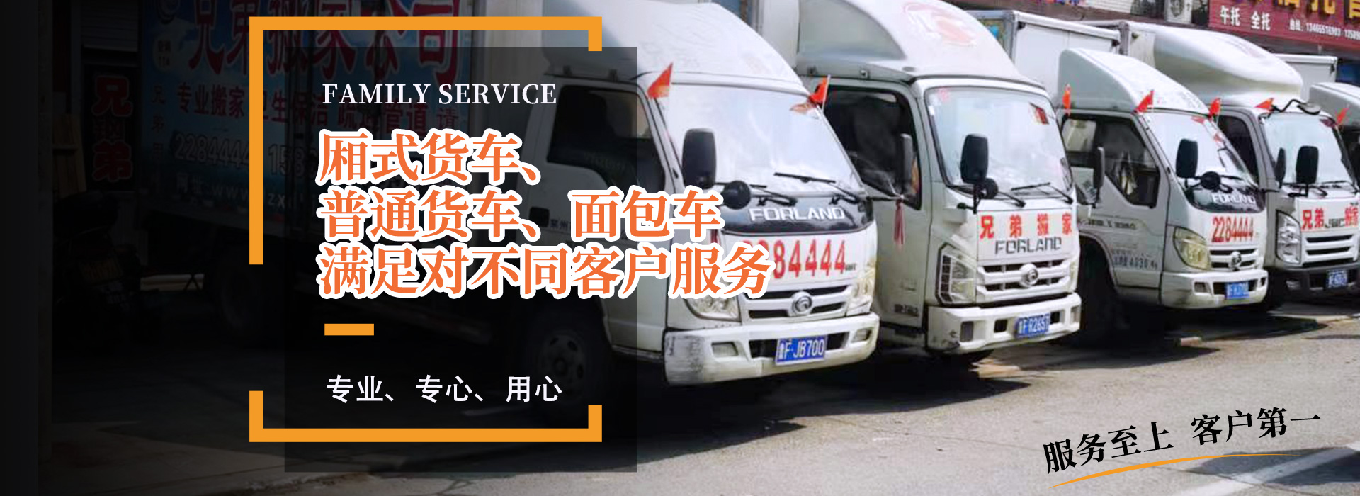 公司備有:廂式貨車、普通貨車、面包車等,滿足對不同客戶服務,為萊州及周邊地區(qū)搬家服務,提供方便。曾被廣大客戶評為“專業(yè)、專心、用心”的搬家公司。以合理收費為標準,以客戶滿意為服務質(zhì)量,力作萊州人的好兄弟!您的滿意就是我們的追求!歡迎各企事業(yè)單位及個人來電咨詢!